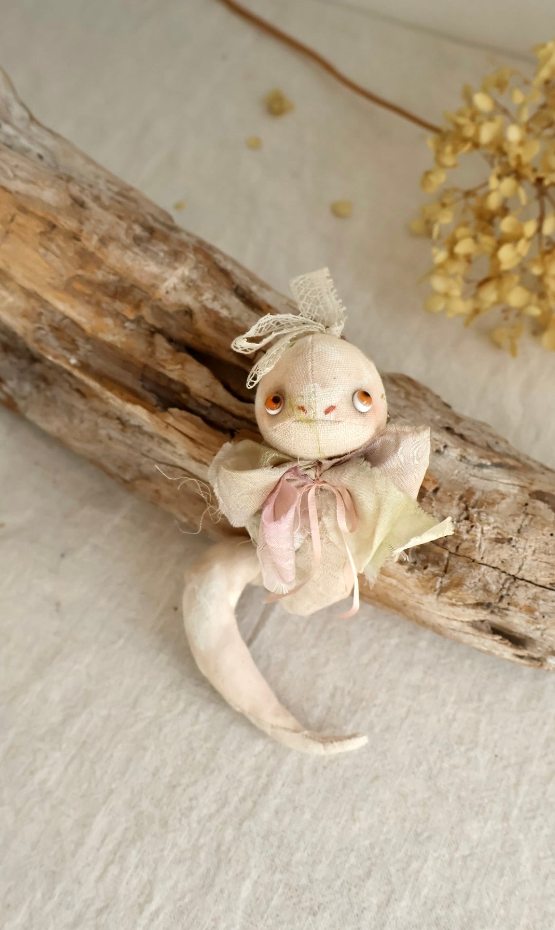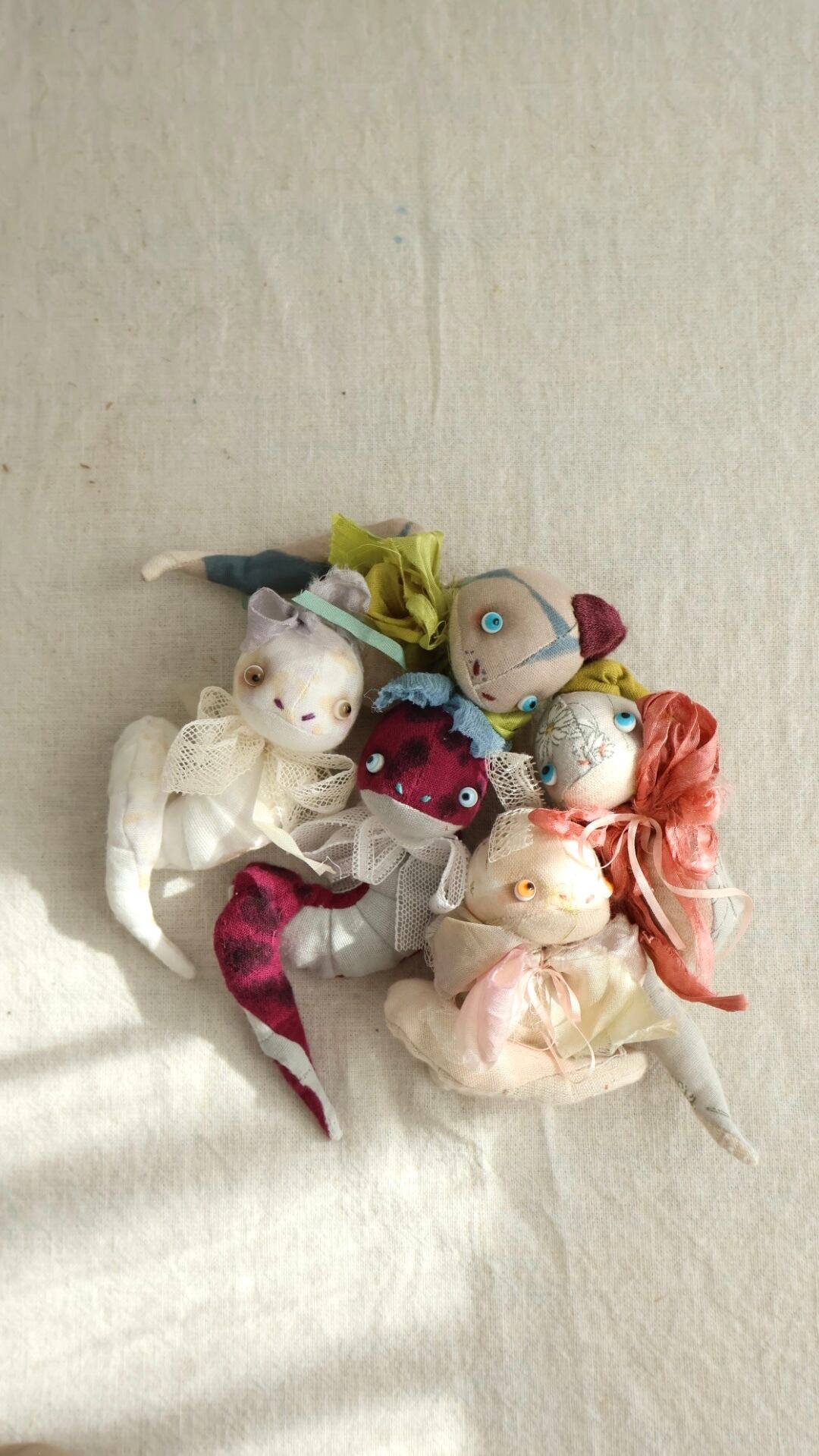 Material: コットン、グラスアイ、グラスビーズ、silk、アンティークリボン